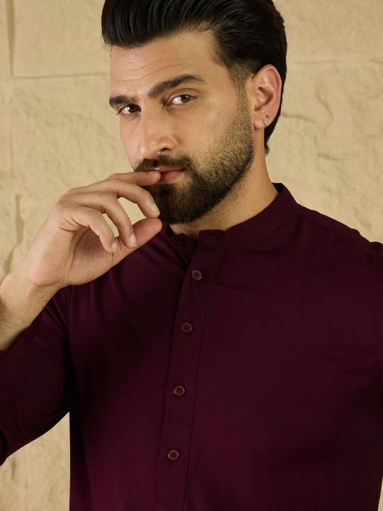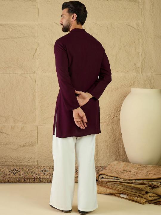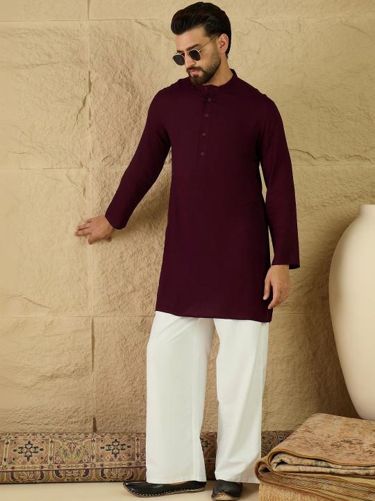 burgundy and white kurta